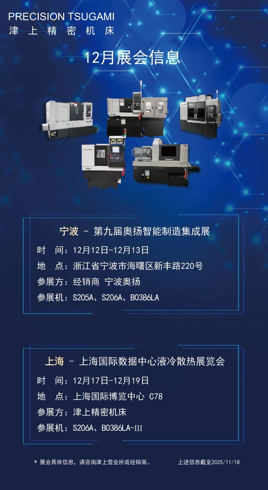 津上精密机床 12月展会信息